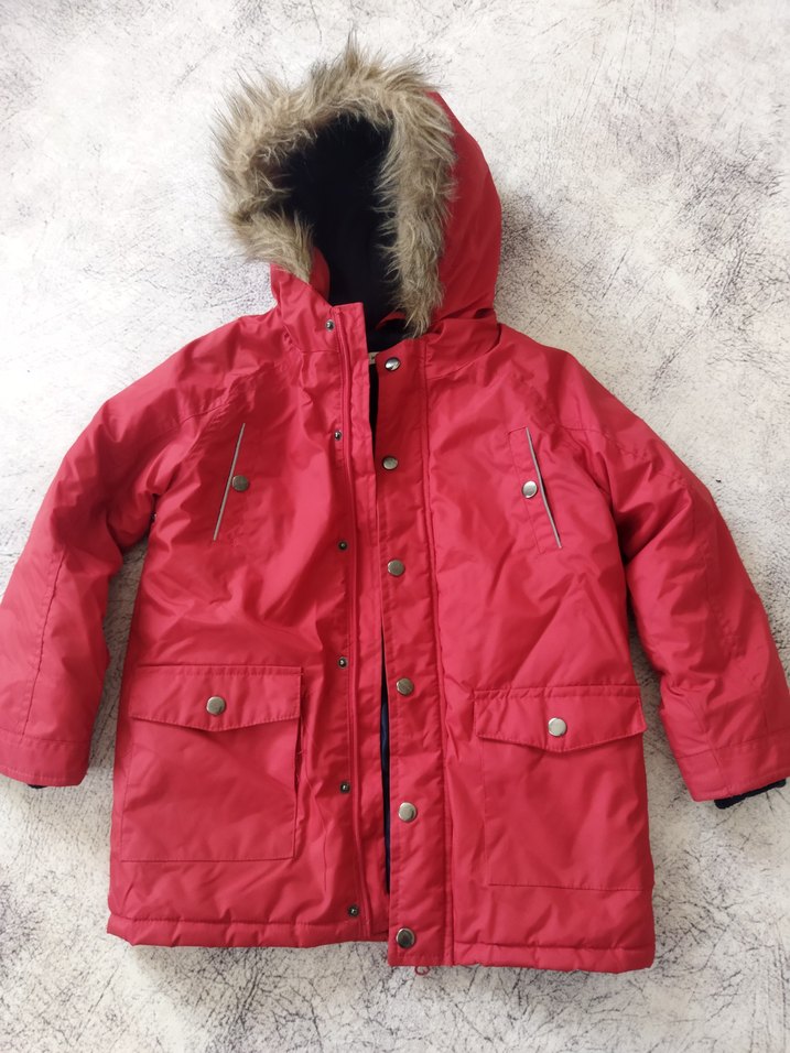 Kız çocukları için kırmızı, kürklü kapüşonlu, yumuşak ve sıcak fleece kumaştan yapılmış, sokak stili uyumlu, düğmeli cepli, sade ve düz model mont.tek sorun bir Çebi yırtık fotolarda mevcut ama dikilebilir