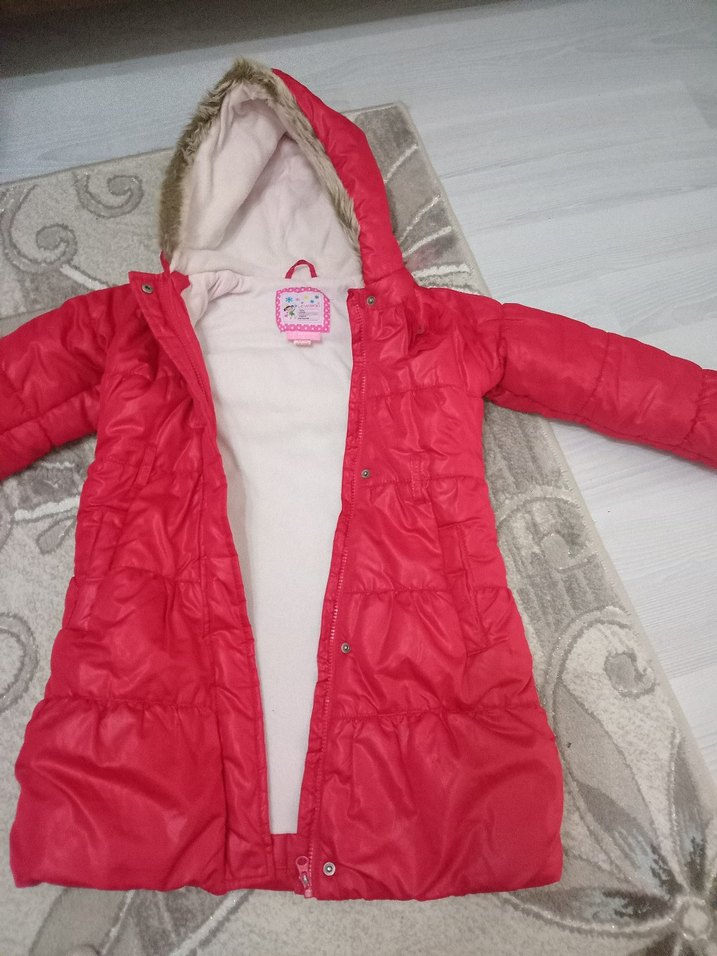Kız çocukları için kırmızı, kürklü kapüşonlu, yumuşak iç astarlı, fitted kesim sokak stili mont. Düz ve canlı renklidir.
