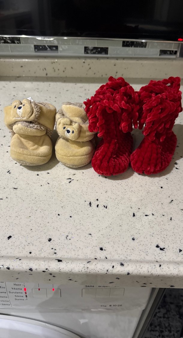 Kız çocukları için yumuşak kürklü, renkli kırmızı sıcak ev terliği. Desensiz ve sade tasarımıyla rahat kullanım sunar.