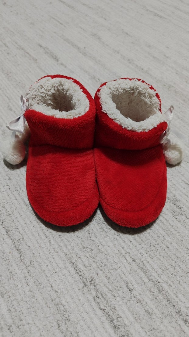 Kız çocukları için kırmızı, kürklü iç detaylı yumuşak ve sıcak ev terliği. Sade ve renkli tasarıma sahip.