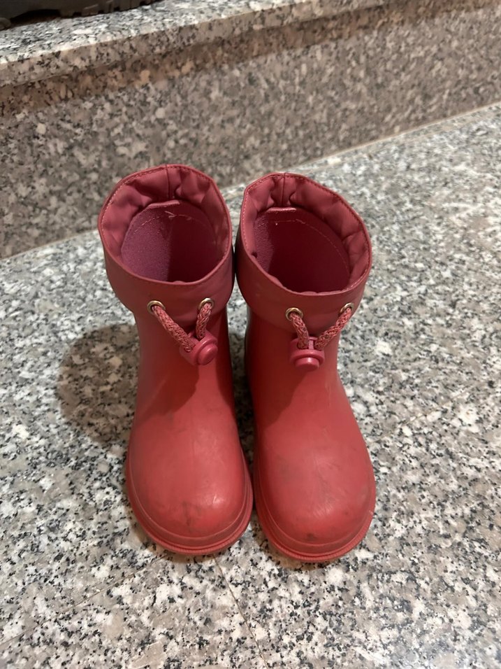 Kız çocukları için kırmızı lastik çizme, tokalı detaylı ve sokak stili tasarıma sahip. Canlı renkte ve desensiz.