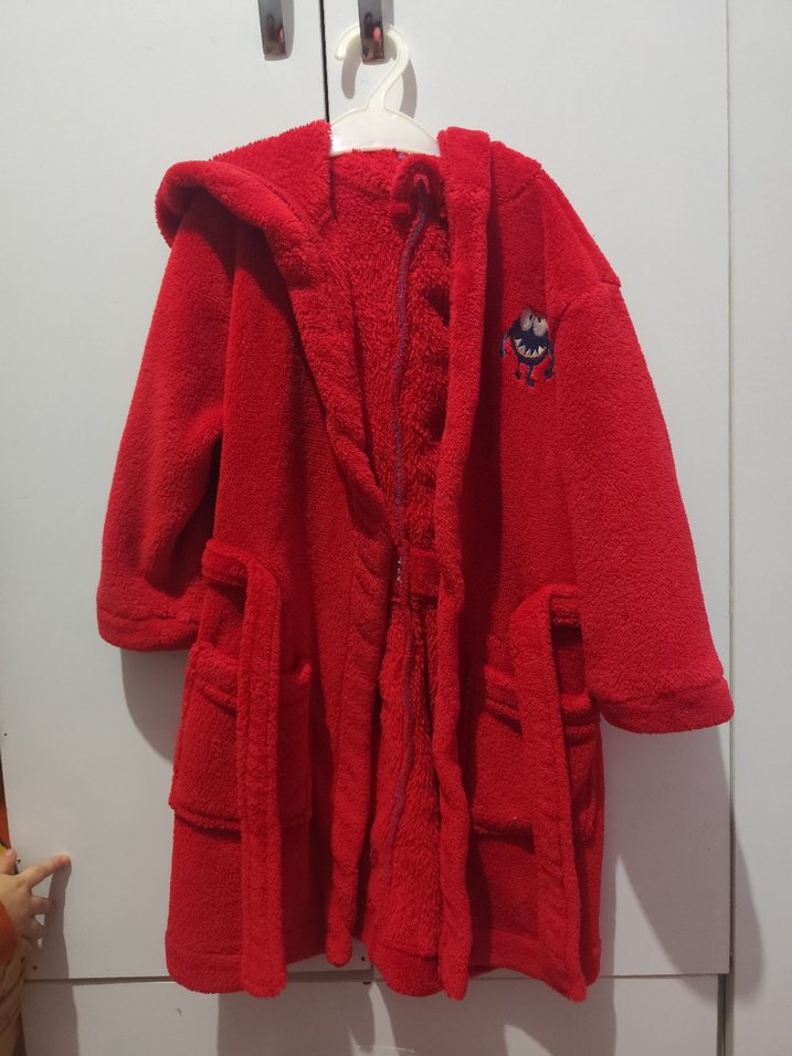 Yumuşak ve sıcak kumaştan yapılmış, kapüşonlu kız çocuk kırmızı nakışlı bornoz. Ön cepleri ve rahat kesimi bulunur. 5 yasa olur yeni