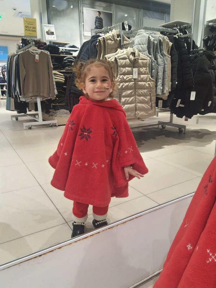 Uzun kollu, yaka detaylı ve nakışlı desenlere sahip kız çocuk kırmızı poncho, yumuşak ve sıcak kumaştan, kürk detaylıdır.