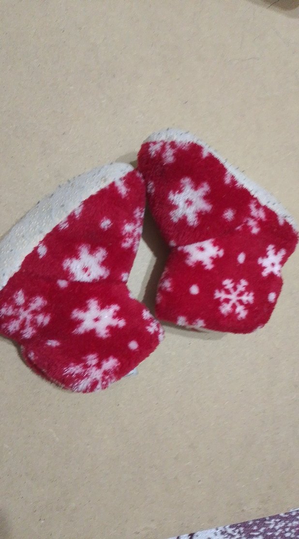 Kız çocukları için kırmızı renkli, nakışlı kar tanesi desenli, yumuşak ve sıcak dokulu örgü ev terlikleri. Rahatlık ve sıcaklık sağlar. ❄️
