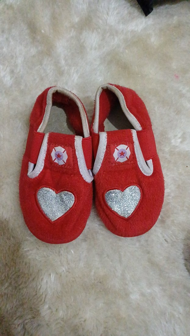 Kız çocukları için kırmızı renkte, nakışlı kalp detaylı ve cırt cırtlı sıcak ev terliği. Yumuşak ve sıcak kumaştan üretilmiştir.