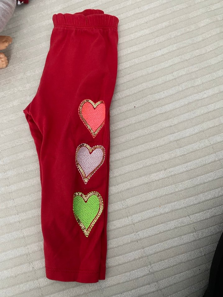 Kız çocukları için kırmızı, nakışlı renkli kalpli ve yapışkanlı ayarlanabilir detaylı, yumuşak ve sıcak kumaştan yapılmış tayt. Rahat ve sokak stiline uygun. ❤️ hiç giyilmedi