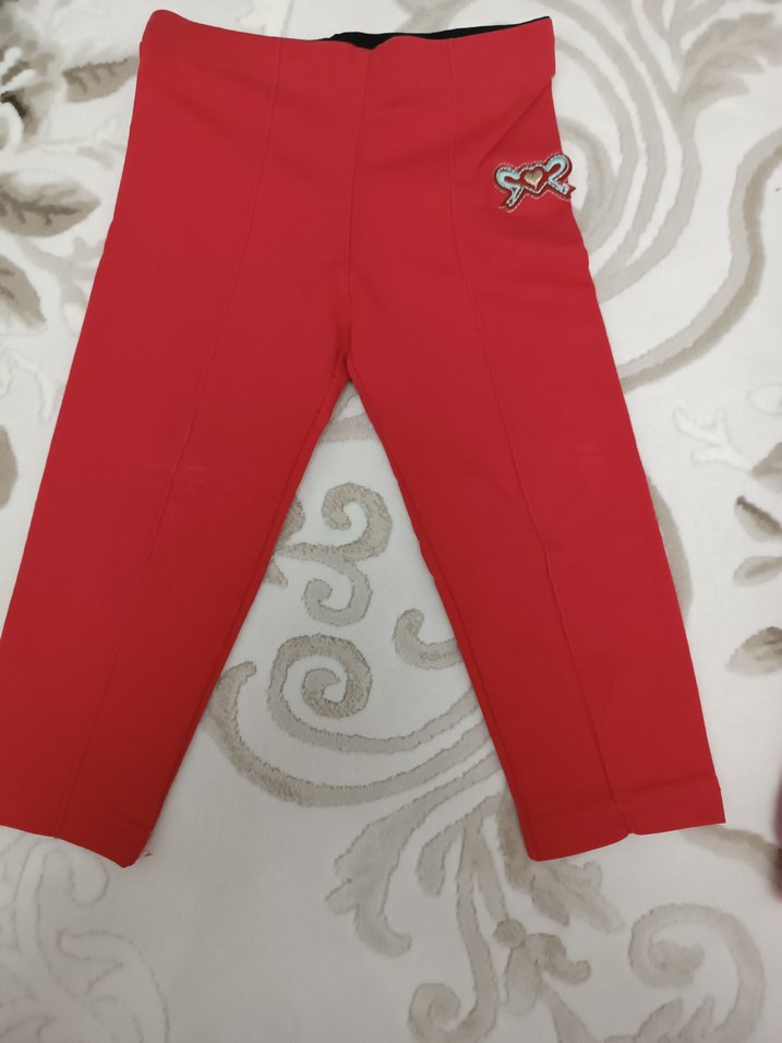 Kız çocukları için elastik bel bantlı, nakış detaylı kırmızı tayt. Yumuşak ve sıcak kumaştan, sokak stili için uygun.