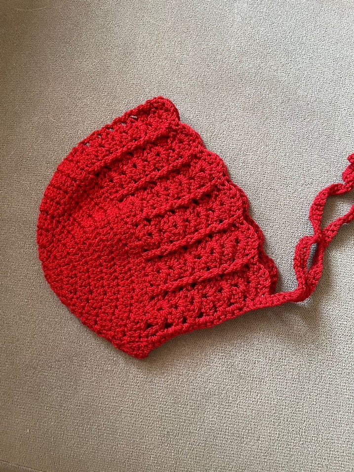 Kırmızı örgü bere, bohem tarzda, sade ve desensiz, bağlama ipleriyle güvenli kullanım sağlar. Kız çocuklarına çok yakışıyor. Ürün el emeği