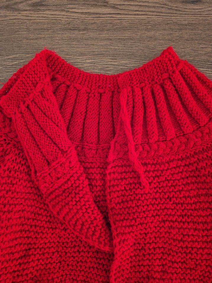 El örgüsü hediye geldi kullanilmadi.renkli kırmızı örgü kız çocuk hırkası, bol kesim ve uzun kolludur. Desensiz, sade normcore tarzda rahat bir seçenektir.