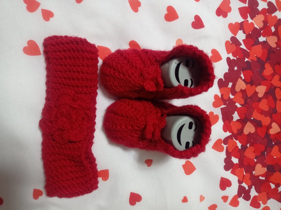 Kız Çocuk Kırmızı Örgü Patik bandana