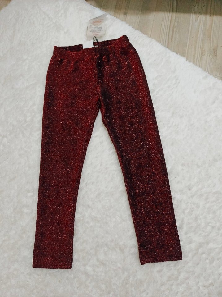 Kız çocukları için parlak sim detaylı, yumuşak ve sıcak kumaştan, fitted kırmızı tayt. ✨