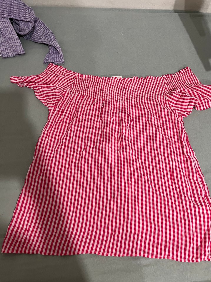 Kız çocuk için kısa kollu, kayık yaka ve pileli detaylara sahip kırmızı renkli, bol kesim tekstil bluz. Bohem ve retro tarzına uygundur.