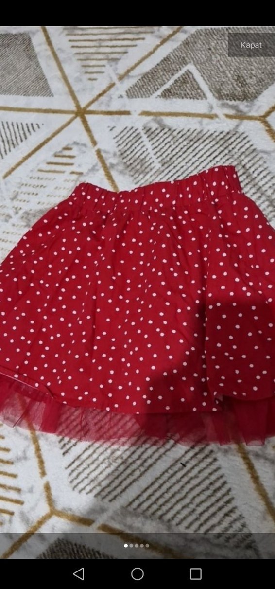 Kız çocuk için kırmızı zemin üzerine beyaz puantiyeli, fırfır detaylı, yumuşak sentetik kumaştan yapılmış dar kesim etek. Renkli bohem stilde şık.