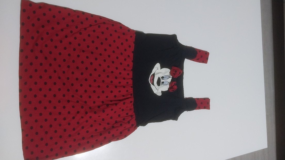 Fitted kesim, kolsuz elbise, renkli kırmızı-siyah tasarımda baskılı Minnie Mouse yüzü ve düğme detaylıdır. Yumuşak ve sıcak kumaş, yuvarlak yakalıdır.