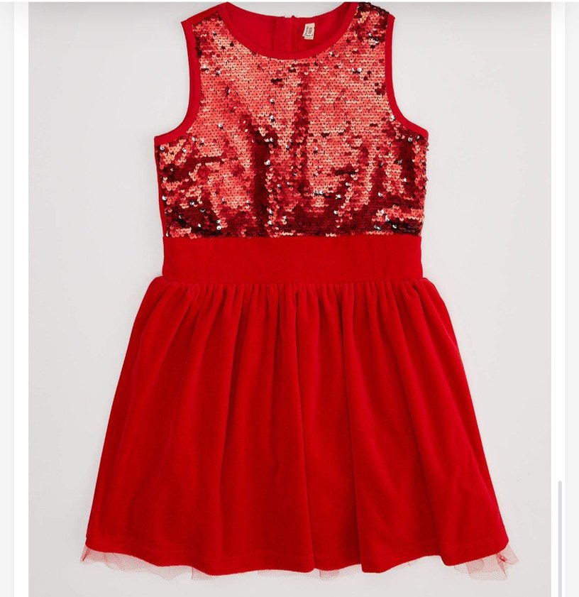 Kız Çocuk Kırmızı Pul İşlemeli Elbise