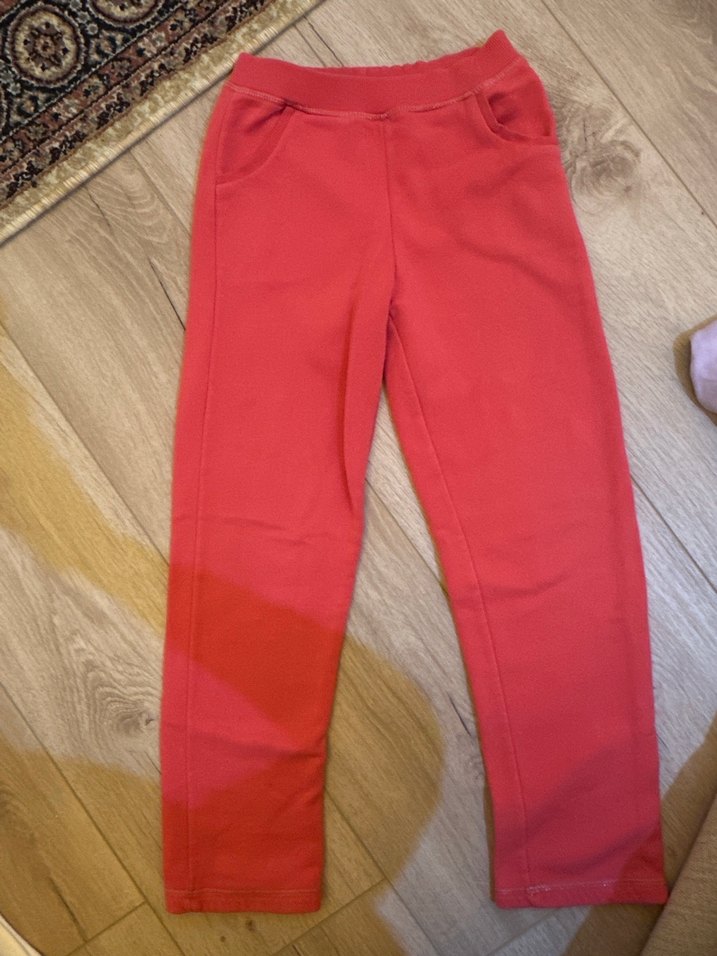 Yumuşak ve sıcak kumaştan yapılmış, elastik bel ve cepli kırmızı rahat kesim kız çocuk taytı. Günlük sokak stili için uygundur. 7/8 yaş