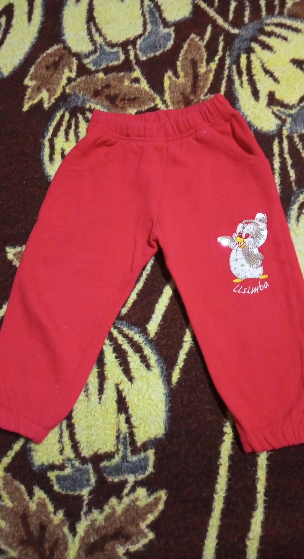 Kız çocuklar için kırmızı, rahat kesimli, örgü görünümlü polar kumaştan yapılmış sweatpants. Renkli baskılı ve elastik bel detaylıdır.
