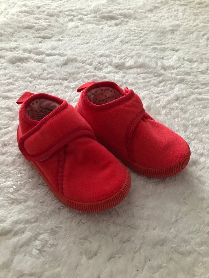 Kız çocuklar için kırmızı sıcak terlikler, yumuşak kumaş ve kolay giyim için velcro bant içerir. Sade ve renkli tasarıma sahiptir.