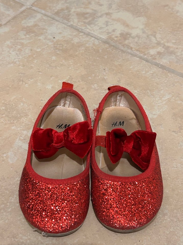 Kırmızı simli kız çocuk babet ayakkabı, nakışlı fiyonk detayıyla. Yumuşak kauçuk malzemeden, sokak stili için uygun. ✨