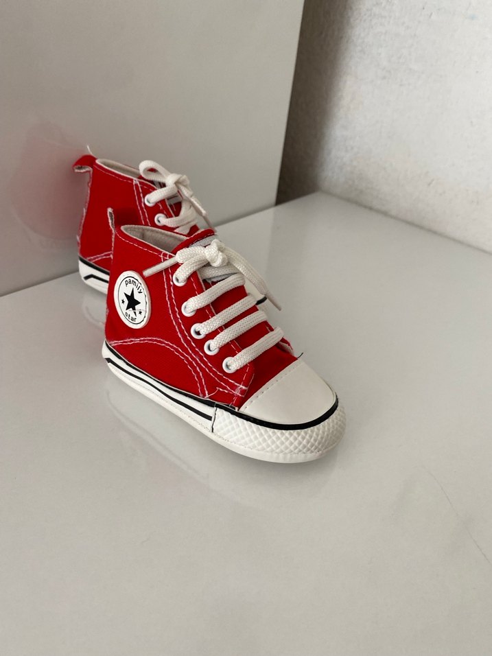 Kırmızı renkli, baskılı desenli kız çocuk sneaker. Kolay bağlanabilen cırt cırtlı, kauçuk tabanlı, sokak stiline uygun.