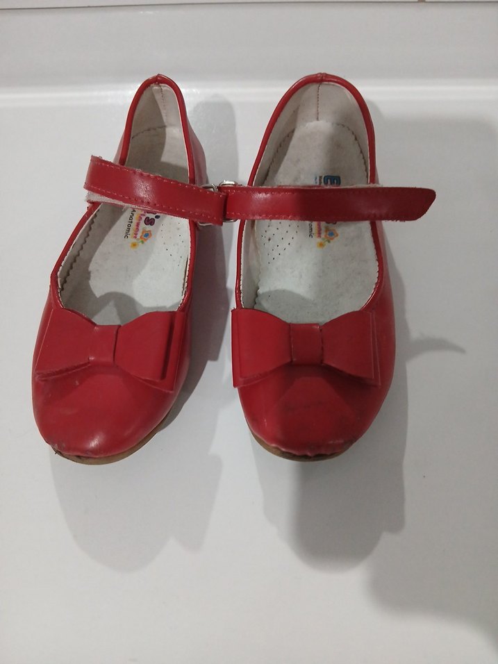 Kırmızı renkli, tokalı kız çocuk babet ayakkabısı, kauçuk malzemeden üretilmiş, sade kurdele detayı bulunuyor. Geleneksel tarzda, renkli görünüme sahip.