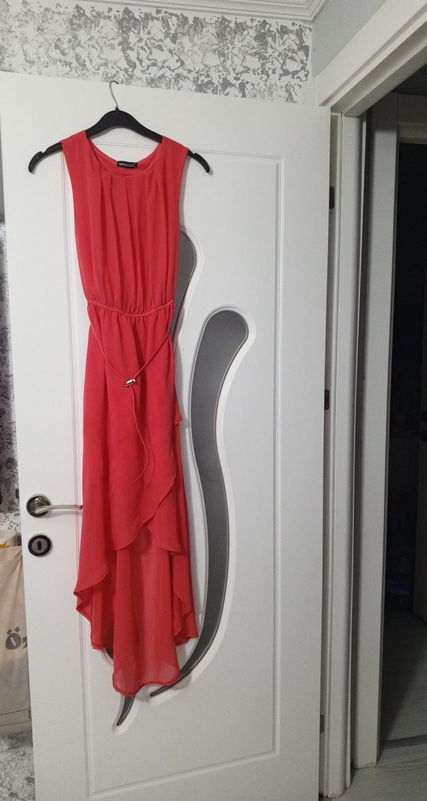 Kız çocuk için kırmızı, uzun, drapeli ve ince kesim elbise. İpek gibi kumaştan, askısız yaka ve ince askılarla romantik akşamlar için uygun. Modern ve minimalist tarzda.renk geçişleri var son resimde belirttim