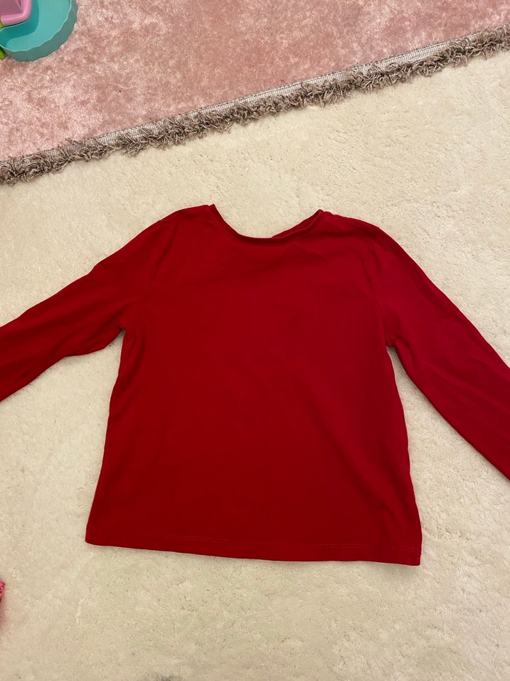 Kız çocuk için uzun kollu, bisiklet yaka ve bol kesim kırmızı tişört. Yumuşak ve sıcak kumaştan, düz desensiz ve parlak renkte rahat bir basic model. Lekesiz sorunsuzdur