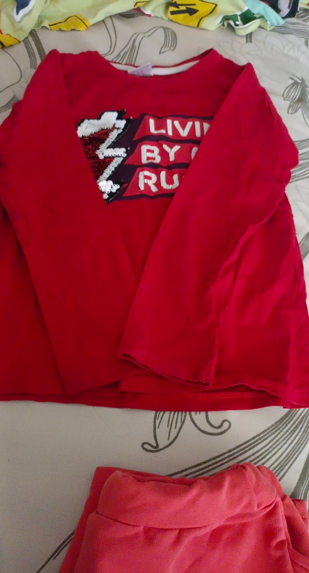 Kız çocuk kırmızı sweatshirt, uzun kollu ve rahat kesimlidir. Yumuşak ve sıcak kumaştan yapılmıştır. Yuvarlak yaka, renkli baskı ve düğme detayları bulunur. Önünde 'LIVI RU' yazılı pul detayları vardır.