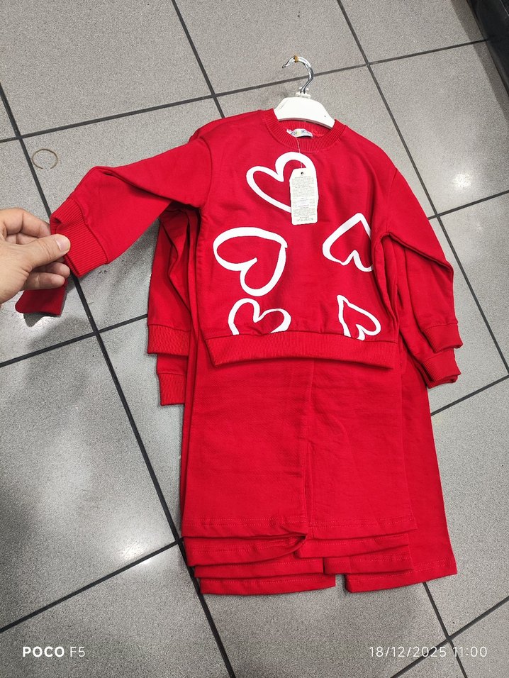 Yumuşak kumaştan, uzun kollu, düğme detaylı, bol kesim kırmızı sweatshirt. Renkli kalp baskıları ve bisiklet yaka bulunur. ❤️2-3-5 yaş arası mevcuttur
