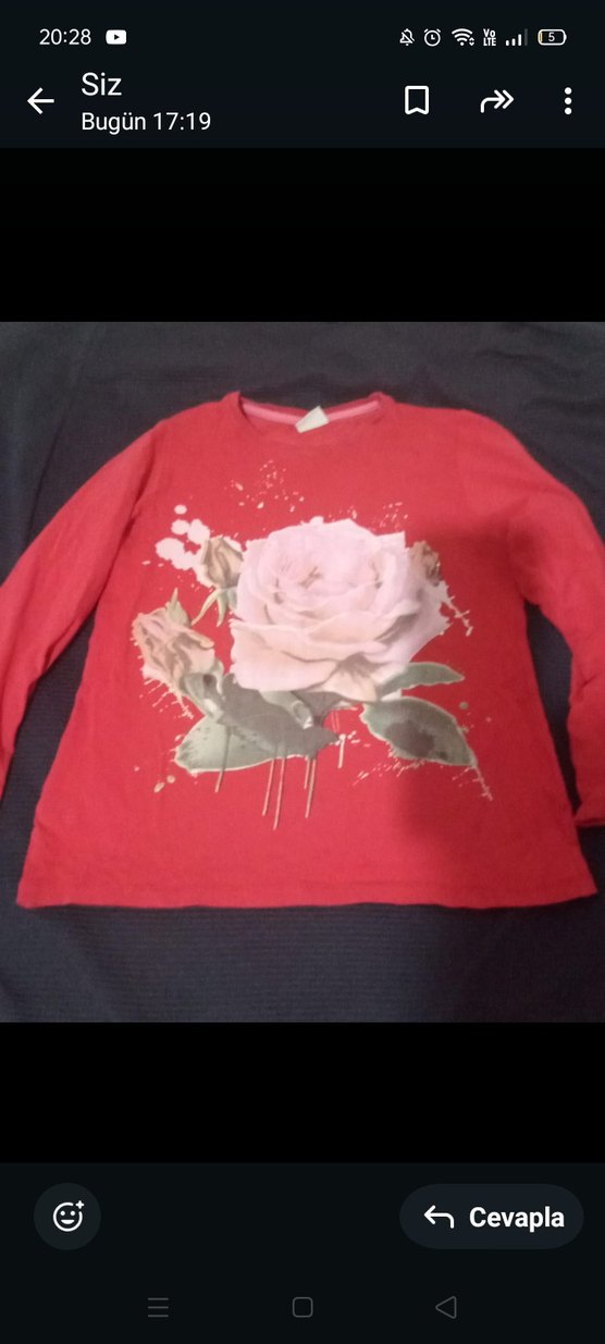 Kız çocukları için uzun kollu, yuvarlak yaka ve bol kesim tişört. Sentetik kumaştan üretilmiş, koyu kırmızı renk ve önünde baskılı çiçek deseni bulunur.