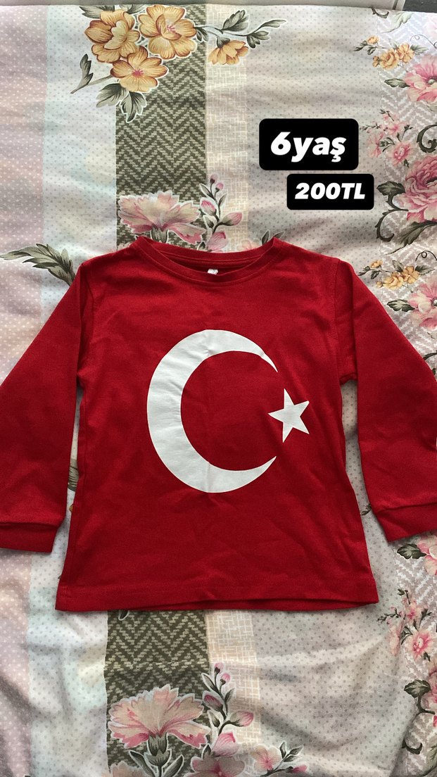 Pamuk kumaştan, uzun kollu ve yuvarlak yakalı kız çocuk kırmızı tişört. Renkli baskılı ve bol kesim, 6 yaş için uygundur.