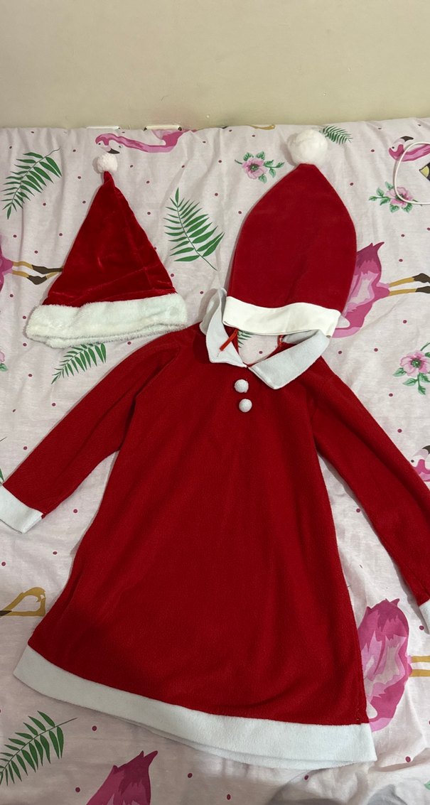 Kız Çocuk Kırmızı Uzun Kollu Elbise ve Şapka