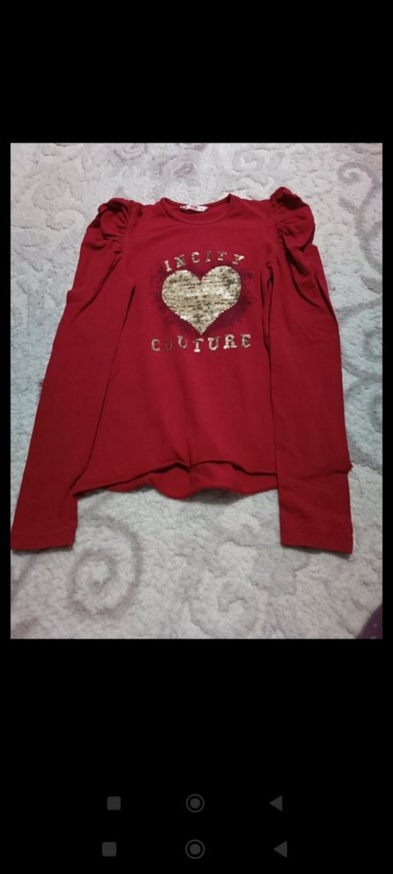 Kırmızı, uzun kollu, fitted kesim kız çocuk sweatshirtü. Yumuşak ve sıcak kumaş, pul işlemeli ve parlak baskılı kalp detaylı. 'CUUTURE' yazısı bulunur. ❤️
