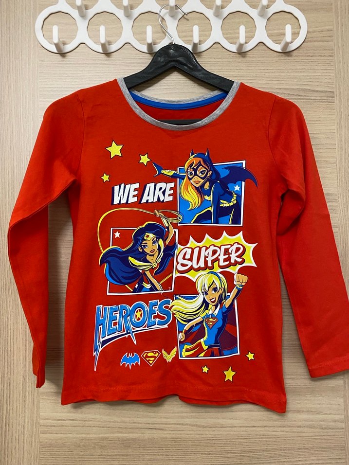 Kız çocukları için uzun kollu, dar kesim ve yuvarlak yakalı. Yumuşak ve sıcak kumaştan, renkli süper kahraman baskılı, cırt cırt detaylı.