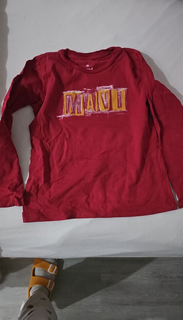 Kız çocuk kırmızı uzun kollu tişört, bol kesim ve yuvarlak yaka ile. Parlak "MAUL" baskılı sade ve rahat sokak stili. Yumuşak kumaştan üretilmiştir.