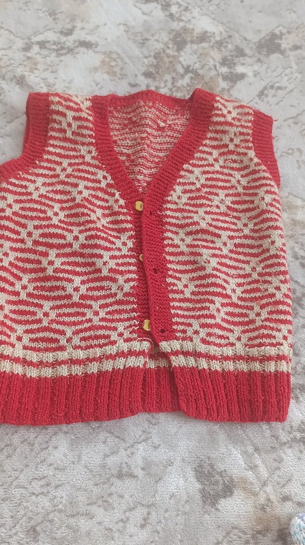 Kız çocuklar için kırmızı, fit kesim, V yakalı ve kolsuz triko yelek, sade desenli ve klasik tarzda.