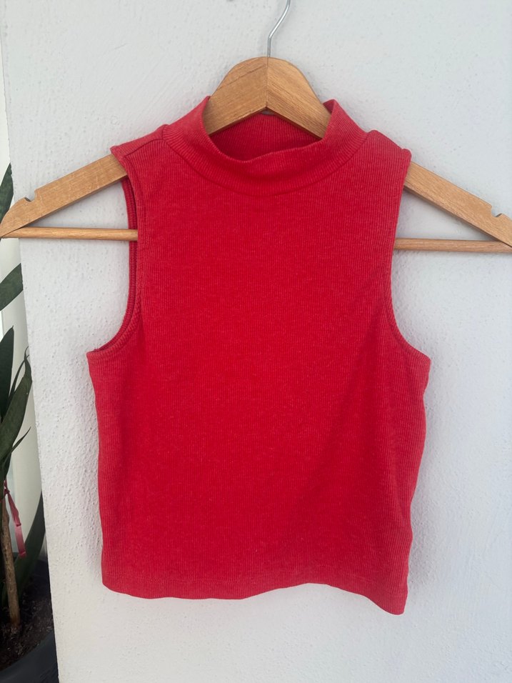 Kız çocukları için yarım balıkçı yakalı, kolsuz, canlı kırmızı renkte, yumuşak ve sıcak kumaştan yapılmış, sade ve şık sokak stili yelek. Katmanlama için uygundur.