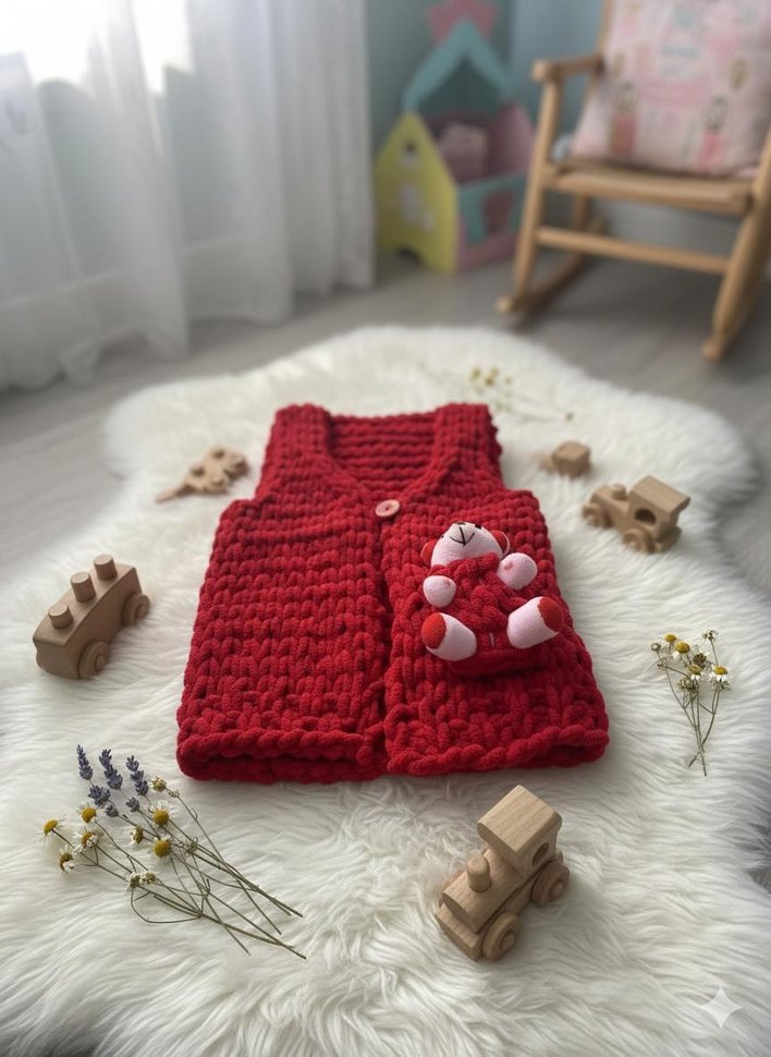 Kız Çocuk Kırmızı Yelek Ayıcıklı