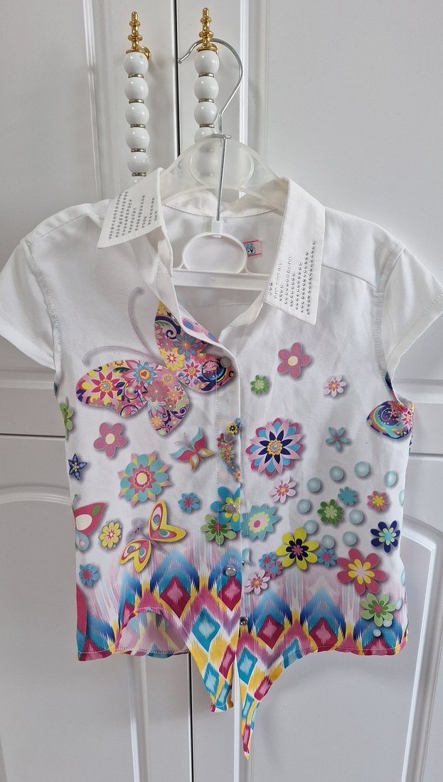 kızım cok az kullandı cok iyi durumda hic bir problemi yok yakası taşlı alttan bağlamalı çiçekli desenli gömlek