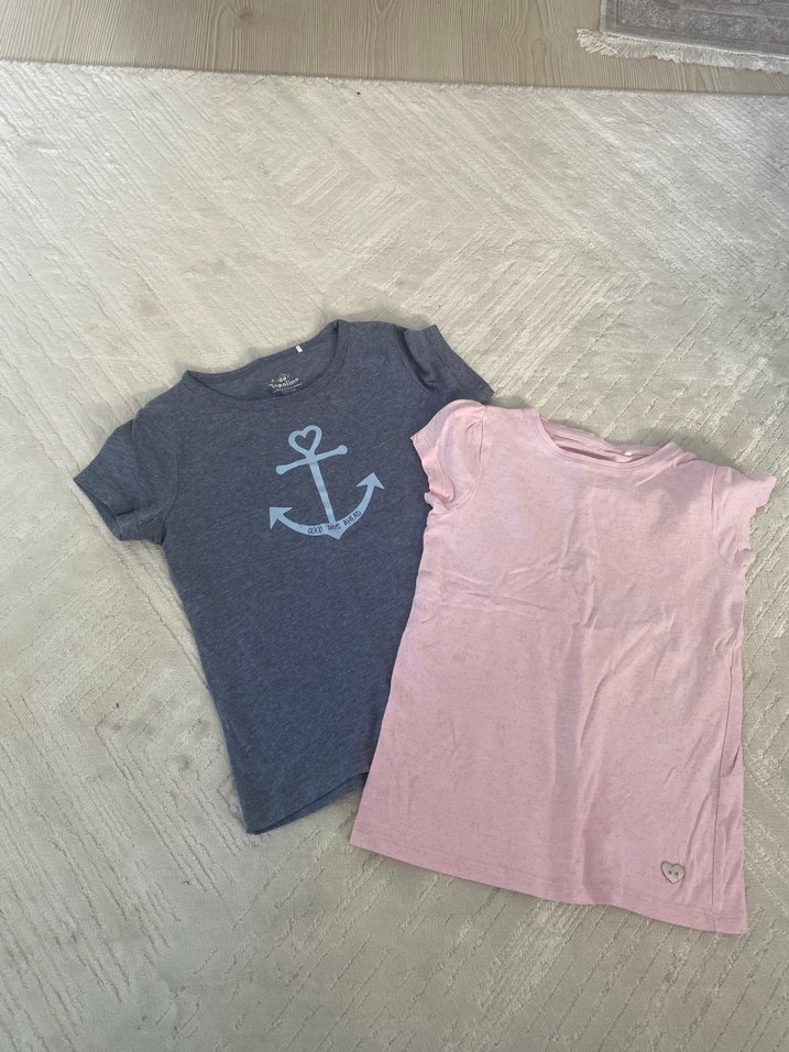 Kısa kollu, bisiklet yaka ve baskılı kız çocuk tişörtleri, denim görünümlü kumaştan. Pembe ve gri tonlarında, rahat şıklık sunar. ⚓