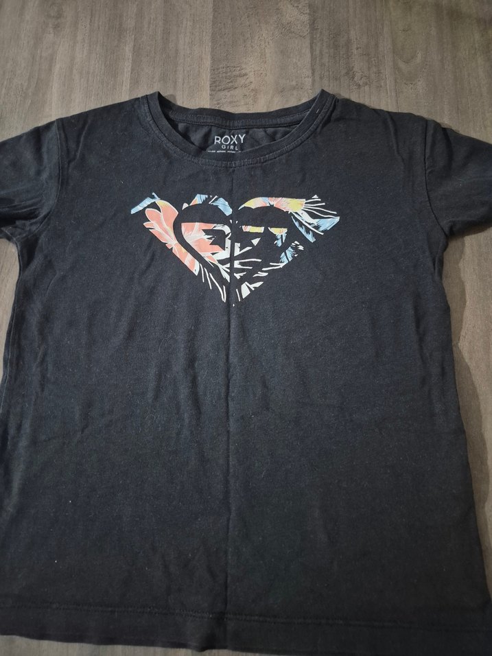 Koyu gri renkte, denim görünümlü kumaştan yapılmış, kısa kollu ve yuvarlak yakalı kız çocuk tişörtü. Renkli baskı ve ROXY logosu bulunur, bol kesimdir.