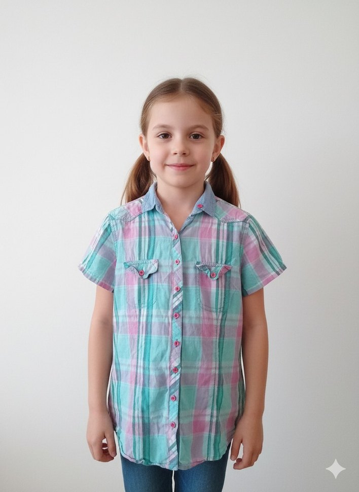 Kız Çocuk Kısa Kollu Düğmeli Pamuklu Gömlek