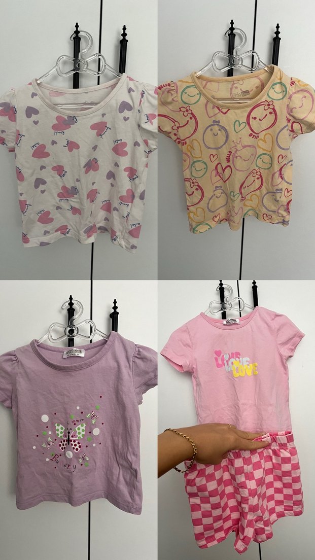Yumuşak pamuktan, kısa kollu, yuvarlak yaka, düğmeli ve bol kesim kız çocuk tişörtleri. Pastel renklerde ve baskılı desenlerle trend sokak stiline uygun.