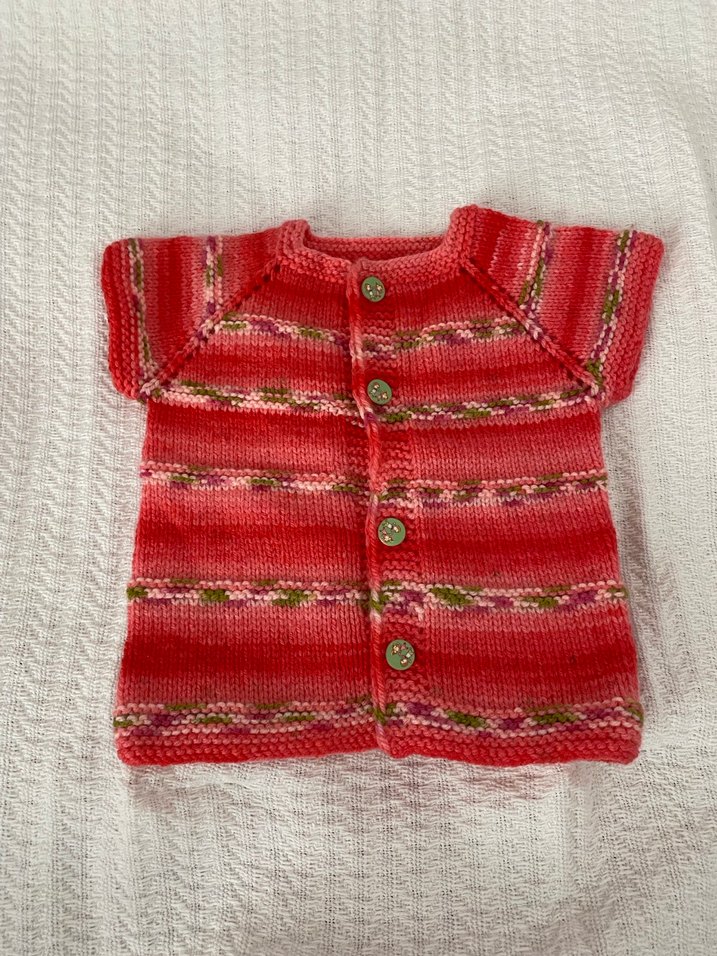 Renkli, örgü kumaştan yapılmış, kısa kollu ve düğmeli, bohem tarzında kız çocuk hırkasıdır. Ölçüleri fotoğrafta mevcuttur