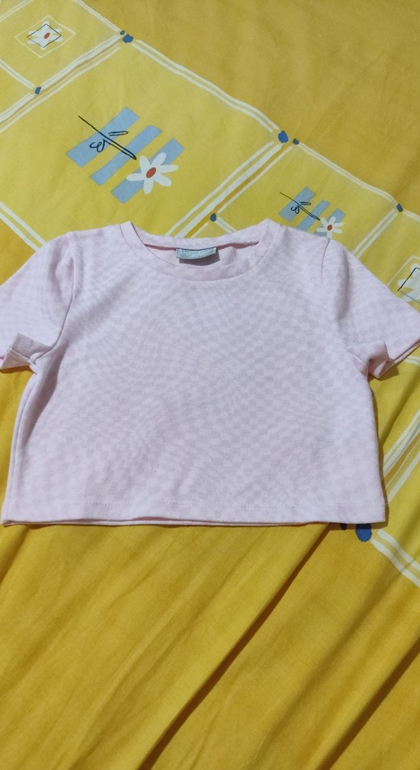 Kısa kollu, yuvarlak yakalı, pastel pembe pamuklu tişört, sade ve şık bir görünüm sunar.