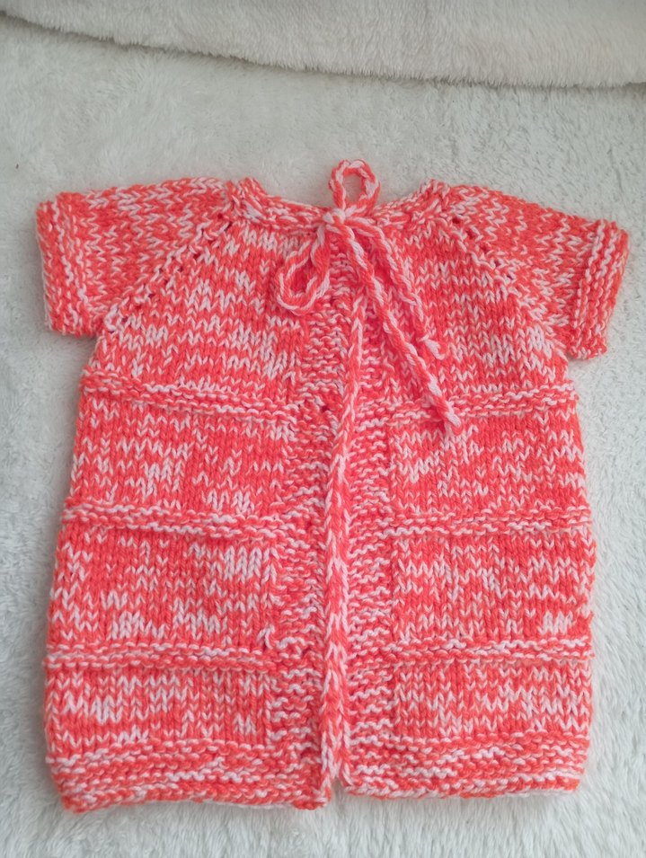 Kısa kollu, fitted kesim renkli örgü yelek, bohem tarzda turuncu ve beyaz tonların birleşimiyle canlı bir görünüm sunar.