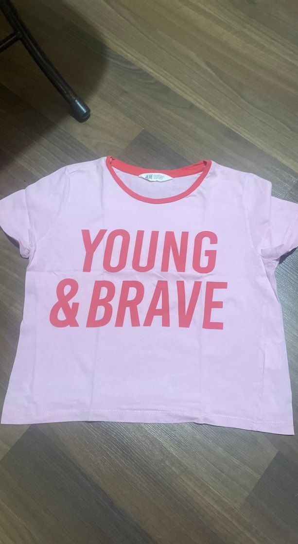 Uçuk pembe, yazısı kırmızı. Hiçbir sıkıntısı yok çok az giyildi.
