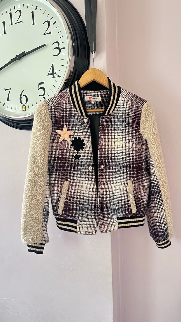 Kız çocuk uzun kollu ve normal kesim midi ceket. Gri tie-dye desenli tekstil kumaştan, notched lapel yakalı, günlük kullanıma uygun. Kullanılmadı✨