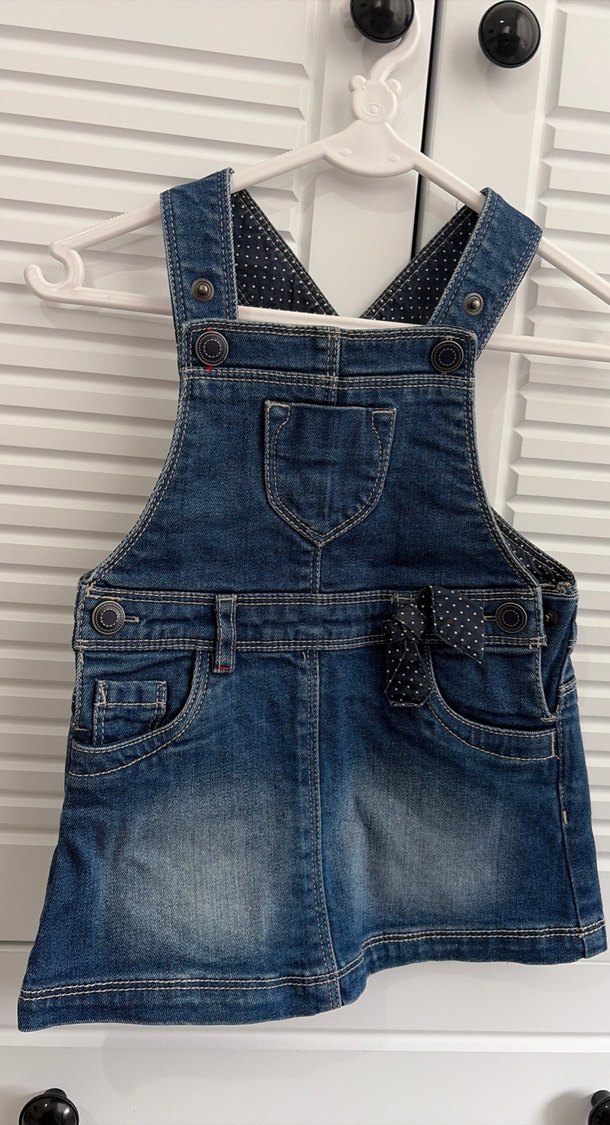 Askılı, kemerli ve küçük ön cepli mavi kot tulum. Belde puantiyeli fiyonk detayı bulunur. Sokak stili için uygun.