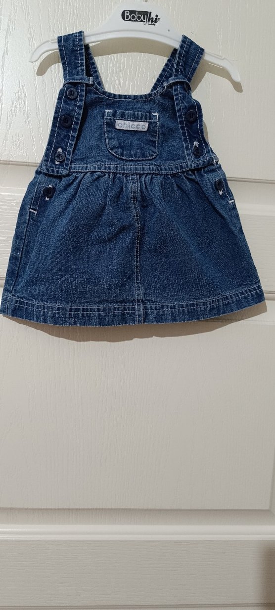 Koyu mavi renkli kot elbise, askılı ve kemerli tasarıma sahip. Gevşek kesim, yuvarlak yaka ve sade normcore stilinde. Etiketinde sadece 6 aylık yazıyor.